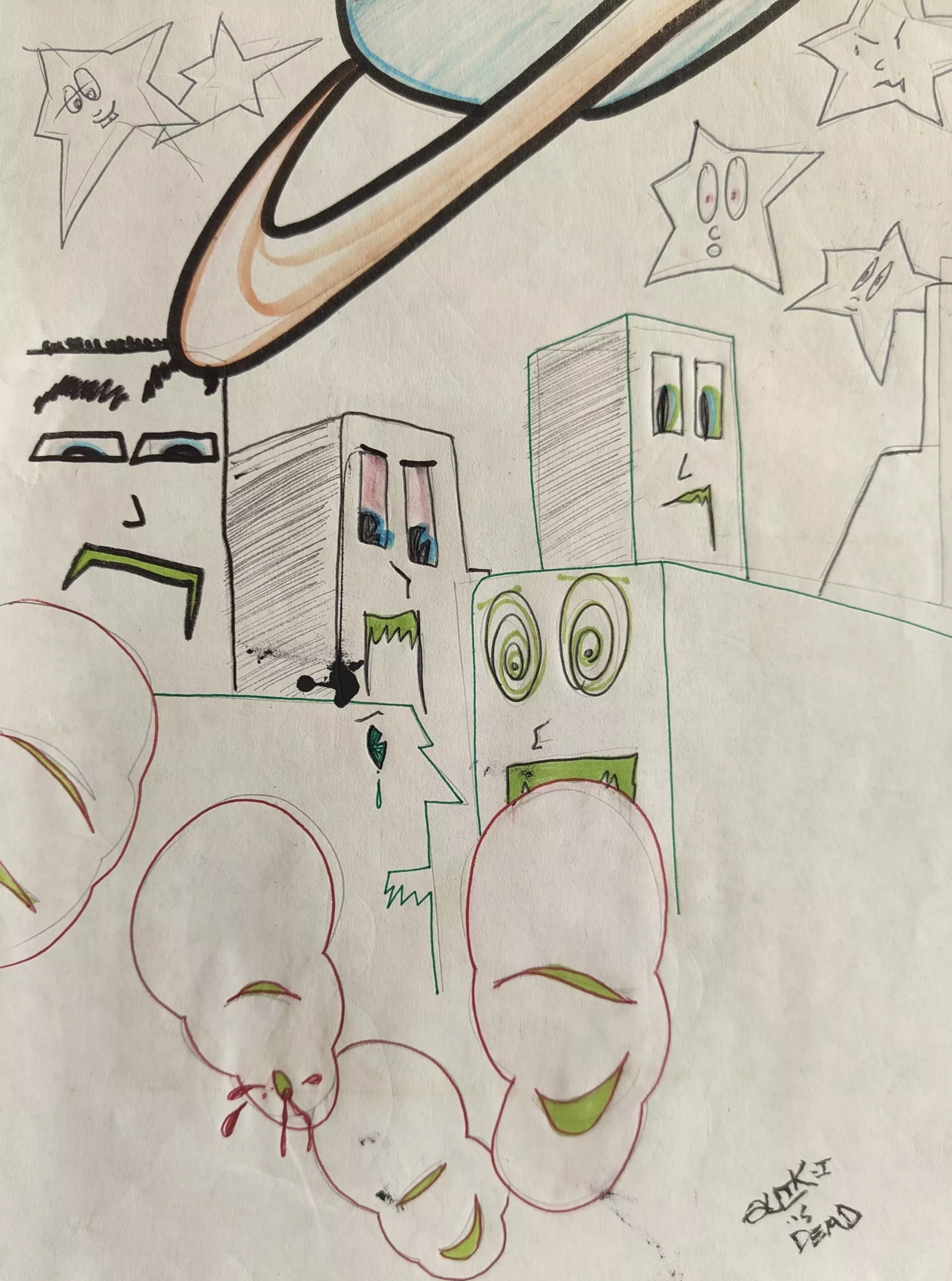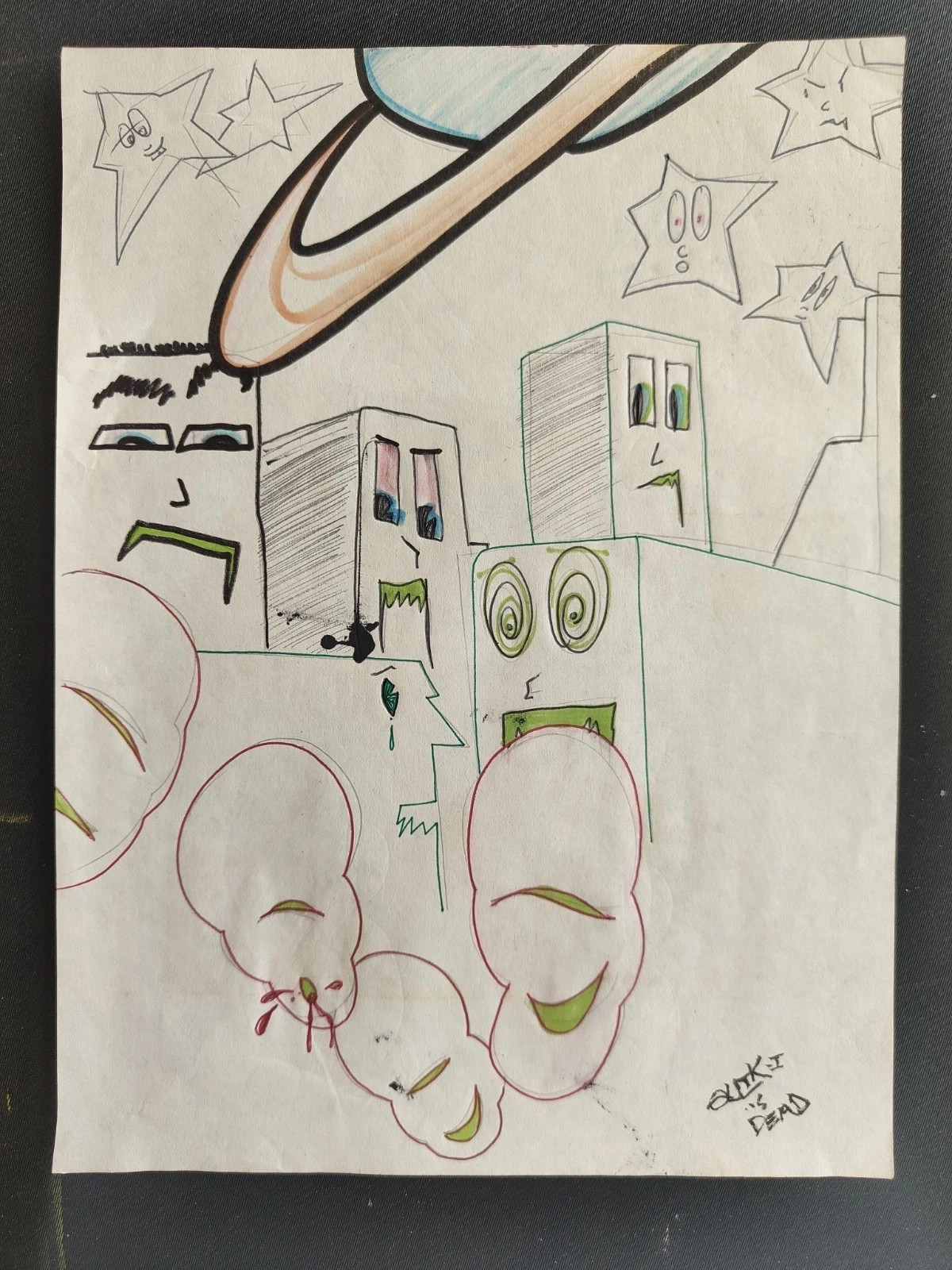 QUIK LIN FELTON “QUIK IS DEAD” SKETCH 21x28cm PEN, MARKERS ON PAPER DATED 1983, SIGNED, TITLED DOWN RIGHT PURE QUIK’S STYLE FROM 80’S. THAT’S GRAFFITI HISTORY.